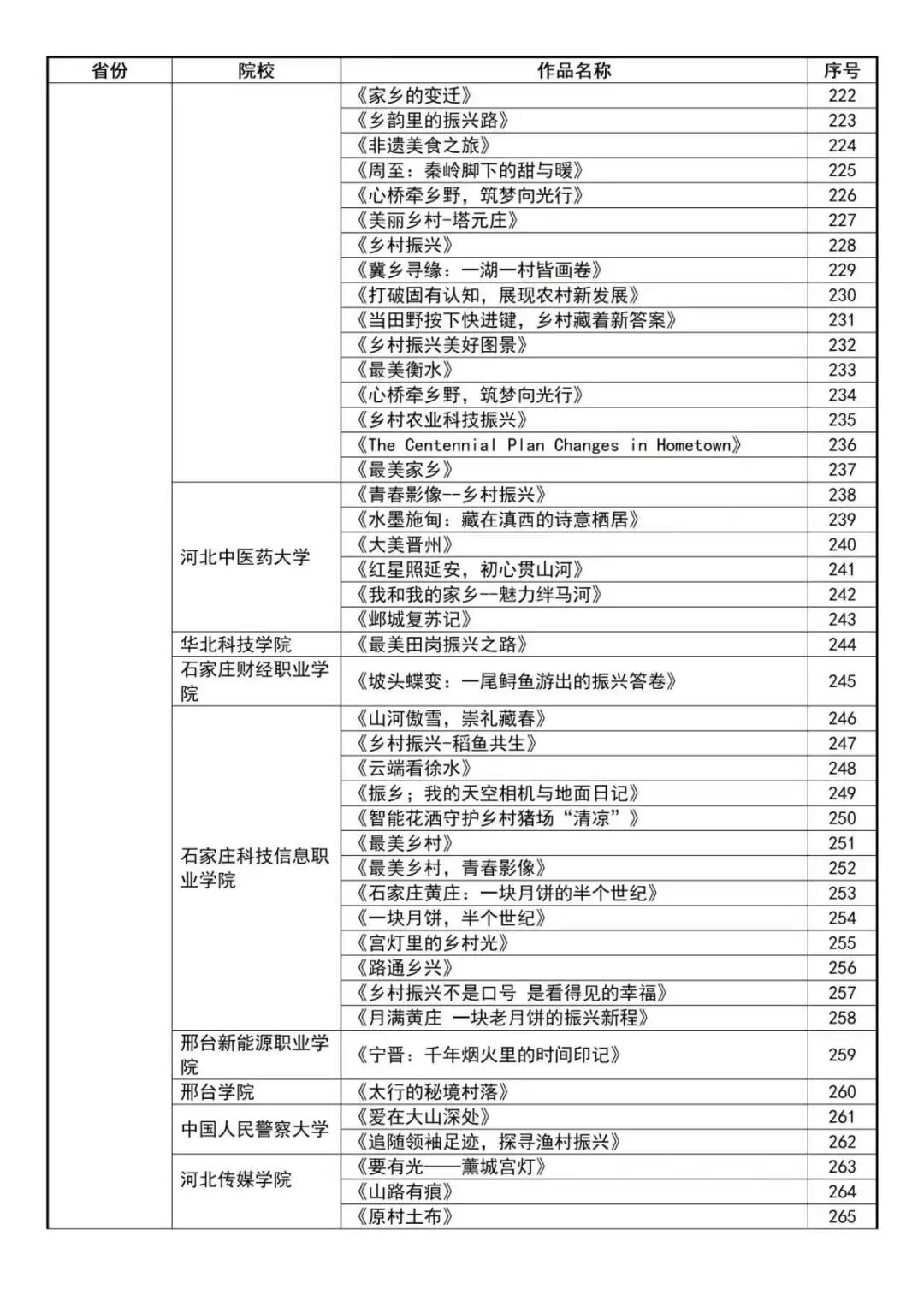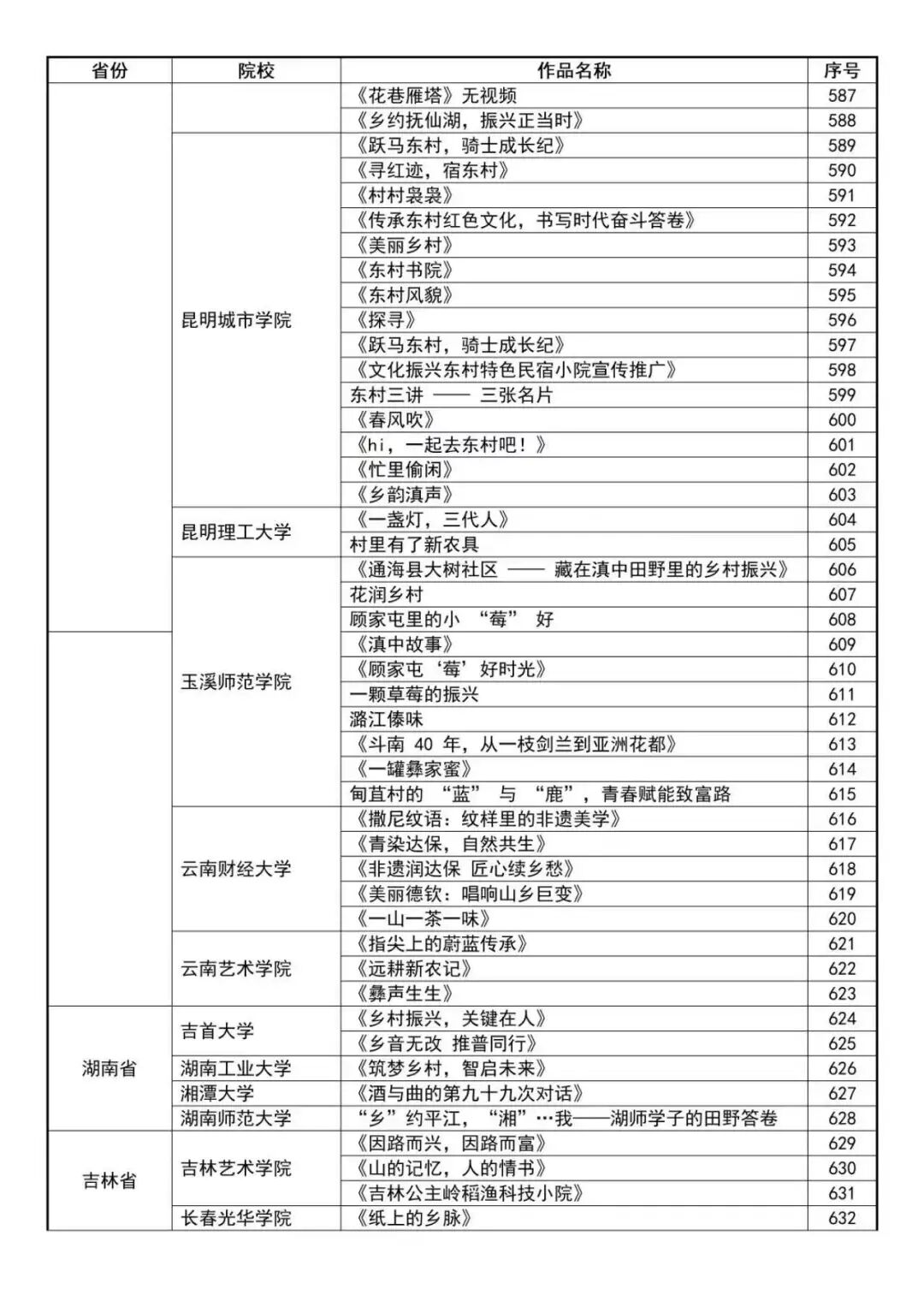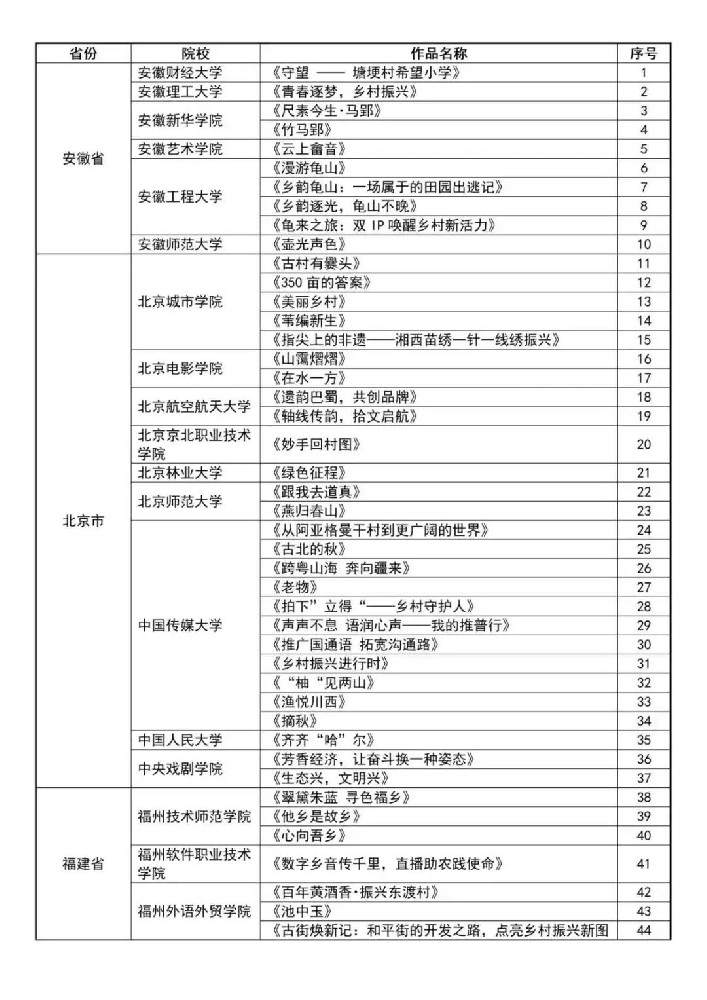 “最美乡村·青春影像”2025年全国大学生乡村振兴短视频大赛报名成功作品公示