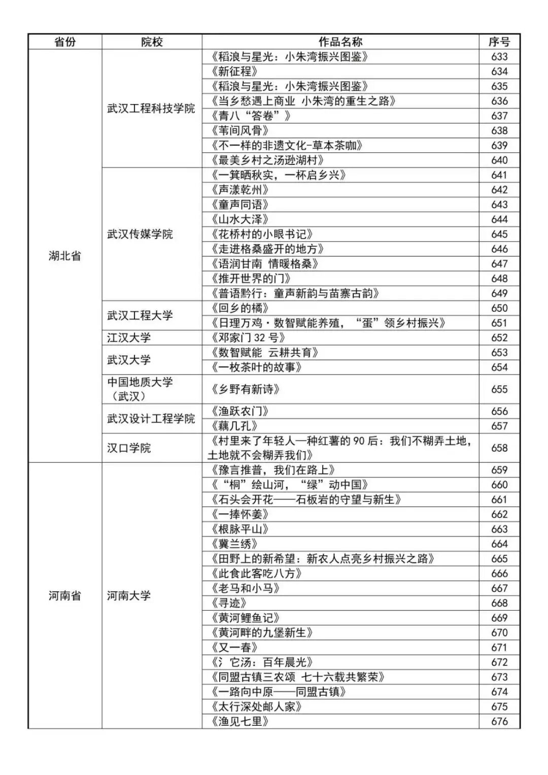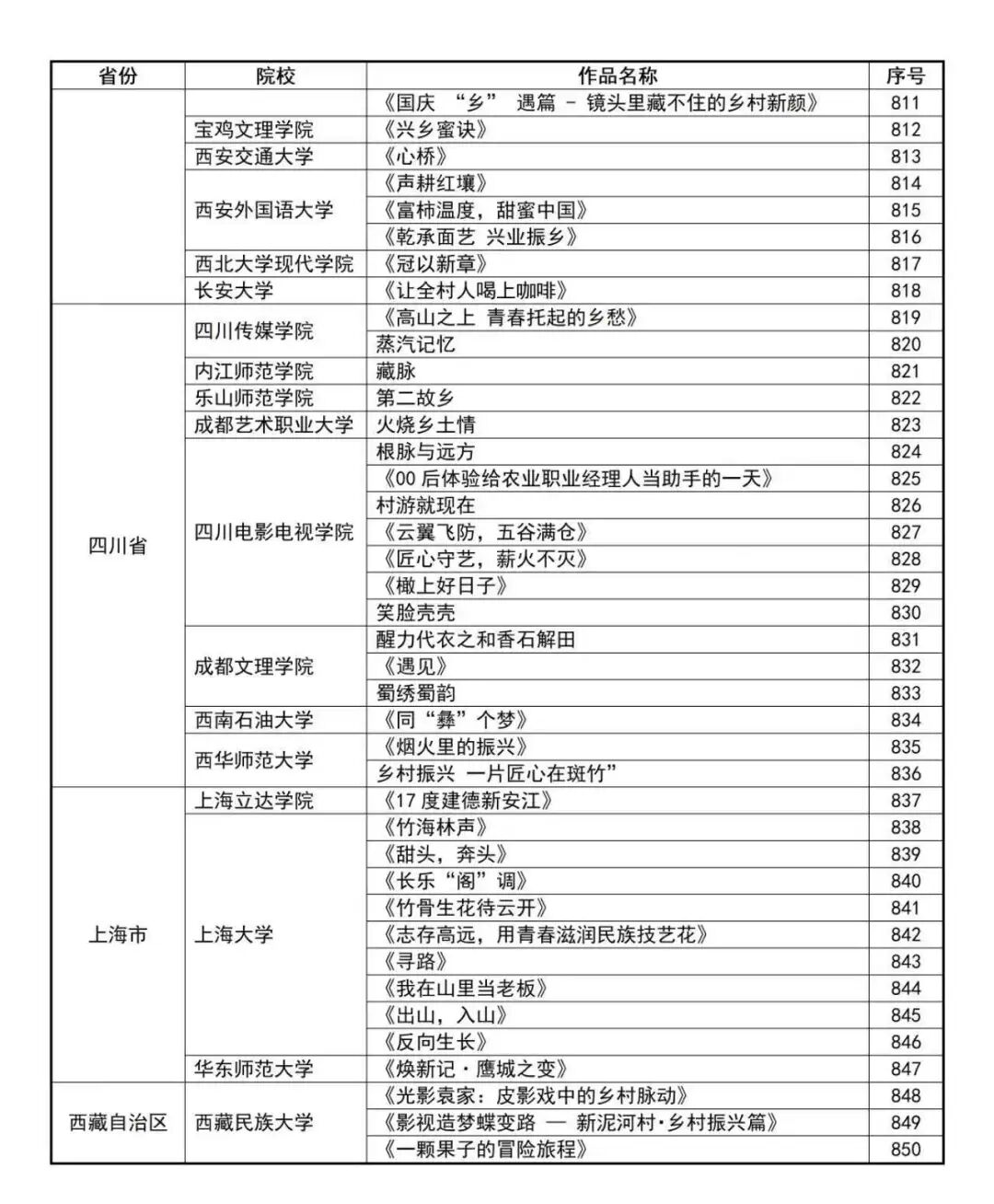 “最美乡村·青春影像”2025年全国大学生乡村振兴短视频大赛报名成功作品公示